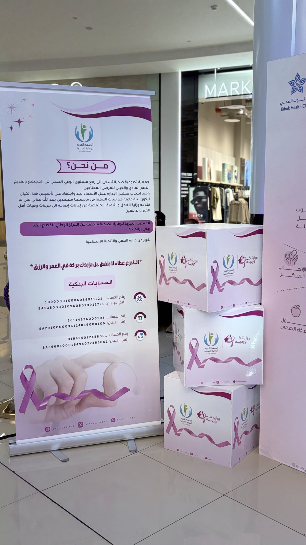 فعلت الجمعية الخيرية للرعاية الصحية بتبوك مبادرة التوعية بسرطان الثدي تحت شعار ???? (رأيتك وردية)، لنشر الوعي وتشجيع الفحص المبكر.